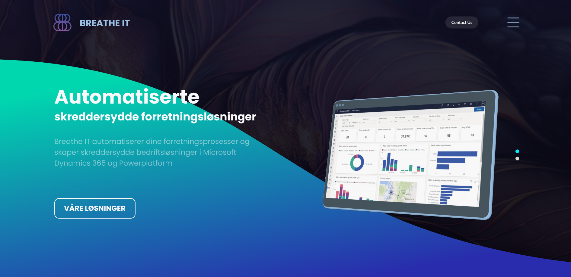 Breathe IT utvikler og implementerer innovative løsninger innenfor Dynamics 365, Power Platform, Azure, AI og hele Microsoft økosystem. Vi skaper derfor en helhetlig tilnærming til Microsofts teknologiske landskap.